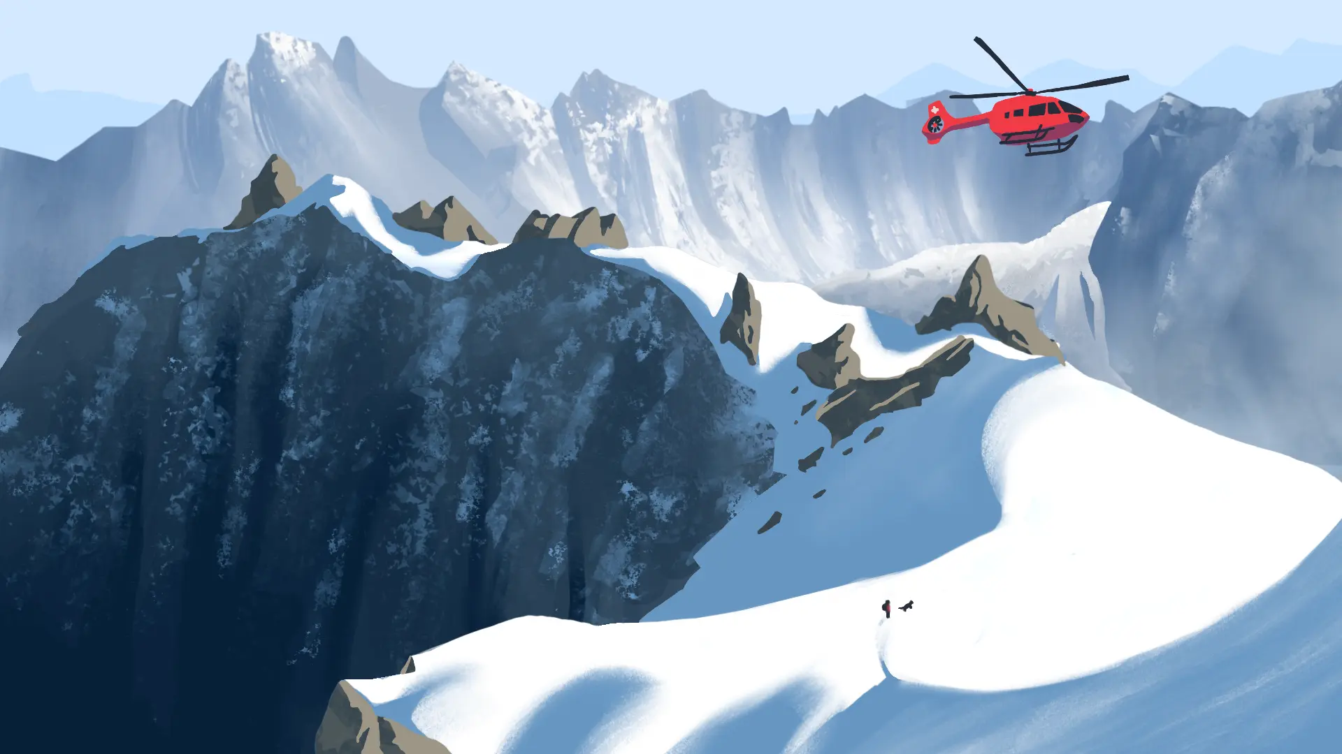 Dogs can smell traces. In this game, players take part in alpine rescue missions, either as a search‑and‑rescue dog or as the dog’s handler. Using the animal’s exceptional sense of smell, they locate victims buried in avalanches or lost in the mountains.